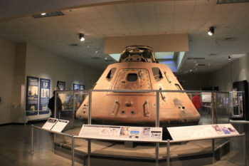 アポロ宇宙船、ジェミニ宇宙船の実物大模型、宇宙服、NASAのスペースシャトル訓練コックピットなど、航空から宇宙への挑戦も体感できます。
