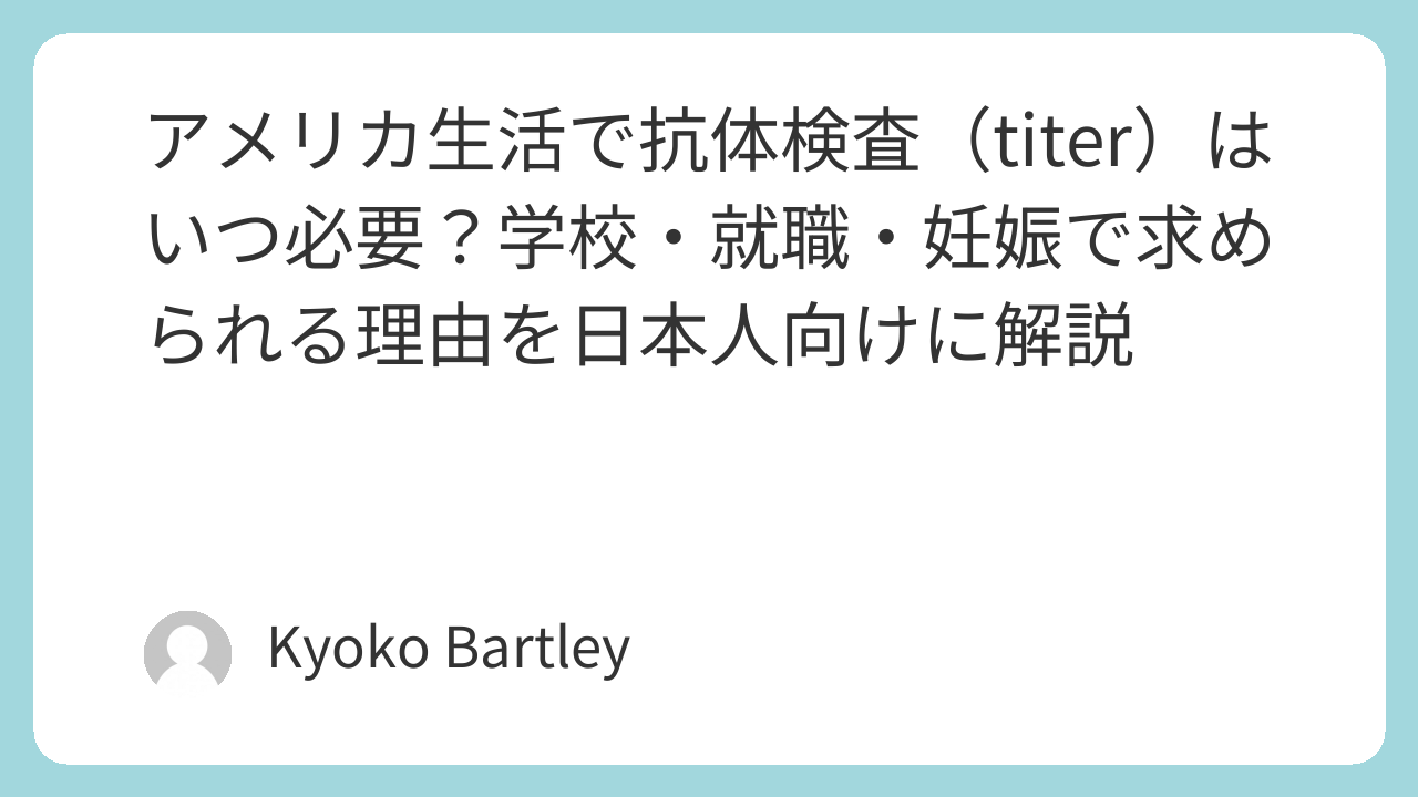 日本ではあまり一般的ではない抗体検査(titer test)ですが、アメリカでは学校・大学・就職・医療・妊娠など、人生の節目ごとに頻繁に求められる重要な検査です。
