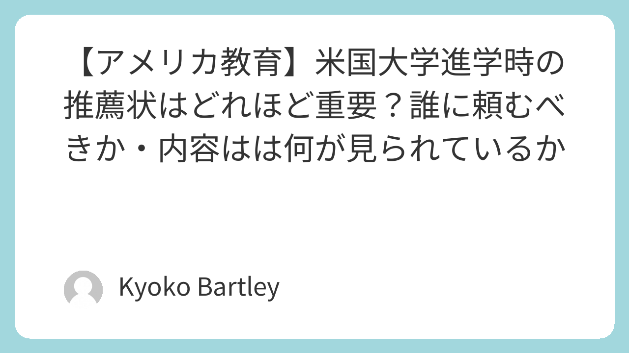 日本人家庭で非常に多い誤解が、「有名な先生」「役職の高い先生」「校長先生や理事」から書いてもらえば有利になる、という考え方です。しかし、アメリカ大学入試では、推薦状の価値は肩書きや地位ではほとんど決まりません。大学が最も重視するのは、その生徒を実際に長期間教え、具体的なエピソードを書けるかどうかです。